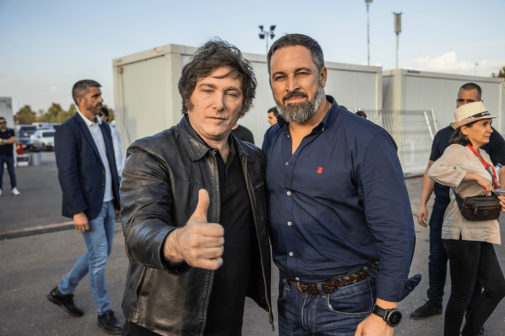 Javier Milei y Santiago Abascal en VIVA22 / Foto: Vox España. CC0 1.0 Deed