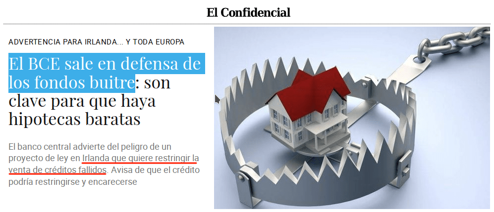 ¿Duda nuestro querido lector que una institución tan respetable como el Banco Central Europeo – el EuroSistema- sea cómplice de una operación de extorsión de las deudas hipotecarias al unísono con los fondos buitre yanquis y la Banca europea?