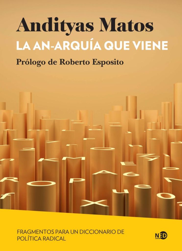En su Presentación, Roberto Esposito, nos dice que el libro de Andityas Matos es un diccionario de política, cierto, pero no nos parece solamente un nuevo diccionario radical porque la an-arquía que viene es, al mismo tiempo y además, un manifiesto y una nueva teoría, esto es, una ontopraxeología: El ser y el actuar van de la mano en una filosofía radical en la que la praxis vital de la escritura precede a la teoría que se expone.