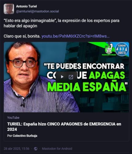 Ayer Turiel publica en su cuenta de Mastodon y hace mención al programa del Colectivo Burbuja que reproducimos previamente.