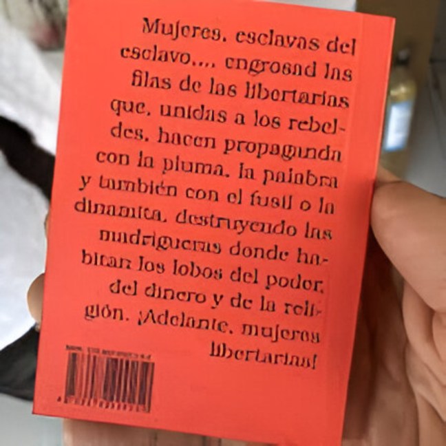 “Mujeres esclavas del esclavo; animad a vuestros compañeros a sacudir el yugo que nos oprime a todos por igual. Rechazad las mentiras y embustes de los verdugos ensotanados; arrojadles al hocico sus ‘reliquias’ y sus monos ridículos y engrosad las filas de las libertarias que unidas a los rebeldes hacen propaganda, con la pluma, la palabra y también con el fusil o la dinamita destruyendo las madrigueras donde habitan los lobos del poder, del dinero y de la religión ¡Adelante mujeres libertarias!” (Mendoza, Francisca J., en ¡Tierra!, núm. 481, 28 de diciembre de 1912).