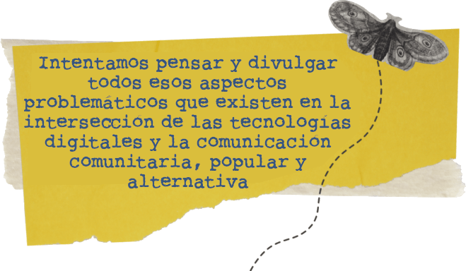 Inés: Yo creo que también está que el devenir de los intereses de la colectiva también va un poco en paralelo a los intereses de quienes las integran, entonces lo que nos interesa es volver a construir conocimiento desde los medios comunitarios y por eso estamos también en este camino, conectándonos con iniciativas de universidades que están estudiando la comunicación popular con teoría alternativa en la región y vinculándonos también a proyectos de comunicación comunitaria de manera más orgánica, para poder estrechar ese lazo entre universidad y experiencia de comunicación comunitaria que nos permita construir conocimiento desde estas otras maneras.