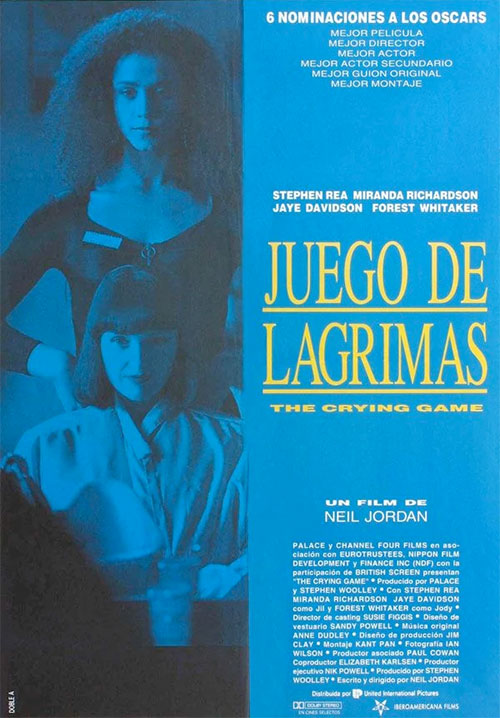 En mi memoria se mantiene, especialmente, una peculiar obra que sorprendió notablemente allá por el año 1992, y que revisada en la actualidad mantiene toda su calidad y emotividad. Se trata de Juego de lágrimas (The Crying Game), escrita y dirigida por Neil Jordan, impagable historia que comienza con el secuestro por parte del IRA de un soldado inglés en Belfast, que pretenden canjear por uno de los suyos prisionero del Estado británico. La confraternización entre un voluntario del grupo terrorista y el militar, tal vez lo más inverosímil, pero necesaria para el desarrollo del film, lleva a un giro narrativo, donde el drama intimista tiene un mayor peso que el político, en el que el irlandés acaba teniendo una relación romántica con la novia del inglés. No desvelaré más detalles de este notable film, solo diré que constituye en mi opinión un inmejorable ejemplo de lo que entendemos como queer.