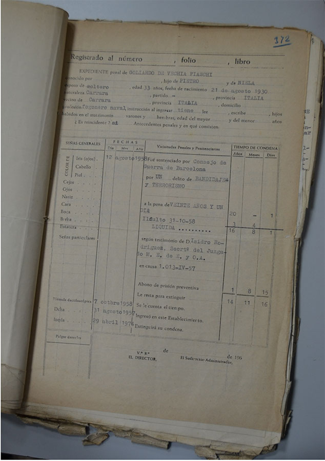 Fiaschi Goliardo Vecchia nacido en Carrara, Italia el 21 de agosto de 1930, vivía en la Vía Santa María 1, era hijo de Pietro y de Niela, por lo que cuando fue detenido en Barcelona tenía 27 años.