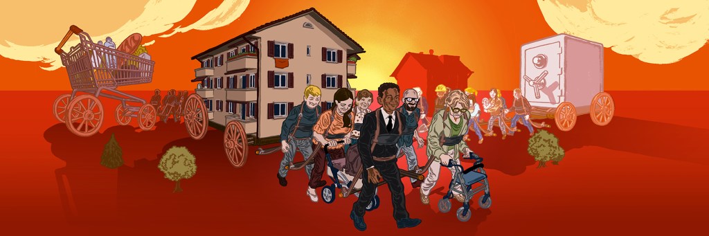 El drenaje masivo de riqueza «de abajo hacia arriba», que representa el juego de suma cero de expropiación social a través de las rentas inmobiliarias, afecta además a segmentos sociales ya de por sí depauperados: las generaciones jóvenes, la mayoría con empleos precarios y mal pagados, y los colectivos de migrantes, un 70% de los cuales carecen de acceso a la vivienda y se ven abocados a un mercado salvaje, donde campa por sus respetos el “racismo inmobiliario”.