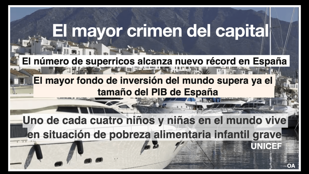 Un tema que indignaba a Octavio Alberola desde que despertó al mundo fue la injusticia social. Supo vislumbrar que, contra quienes confían en el «progreso» de la humanidad, las desigualdades y la falta de justicia social no solo no se reducen, sino que cada vez se incrementan más y afectan a más países del mundo.