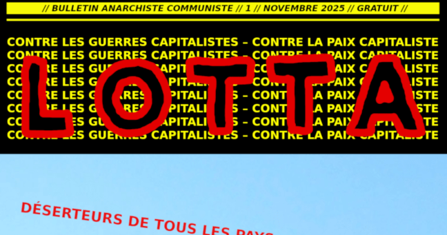 El boletín Lotta publicará textos que abordan la realidad desde una perspectiva antimilitarista, internacionalista y derrotista revolucionaria. Queremos analizar y compartir las experiencias acumuladas durante generaciones en la lucha contra el mundo capitalista y las guerras que ha provocado.