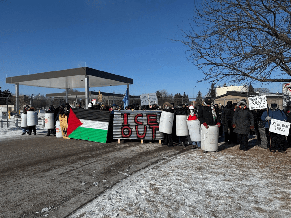 Ya he visto una muerte por exposición al frío. La piel negra y vidriosa de su cuerpo es una visión que jamás olvidaré. Últimamente, el ICE ha estado imitando los «Viajes Starlight» de la Policía de Saskatoon, dejando a los arrestados en plena noche en zonas remotas, utilizando intencionalmente la exposición al clima como arma de tortura . La mañana de la huelga general, la temperatura ajustada al efecto del viento era de unos -30 grados Fahrenheit (-35 Celsius). Esto puede provocar congelación en la piel descubierta en veinte minutos, un problema que requiere una planificación cuidadosa y ropa especializada.