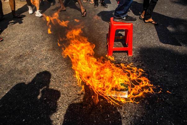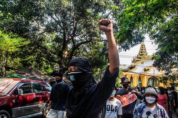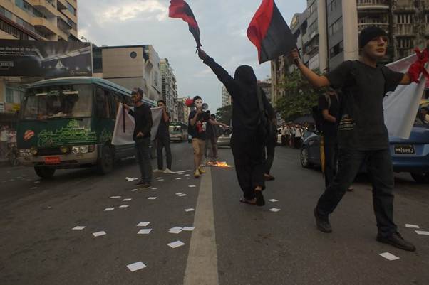Las trabajadoras de la fábrica textil del conocido distrito industrial de Hlaingthaya, en Yangón, fueron de las primeras en salir a las calles a protestar, mientras que la ABFSU, ignorando los llamados de moderación de la dirección de la LND, comenzó a organizarse por su cuenta. Mientras tanto, la gente común comenzó a golpear cacerolas y sartenes desde sus balcones todas las noches en señal de protesta5.