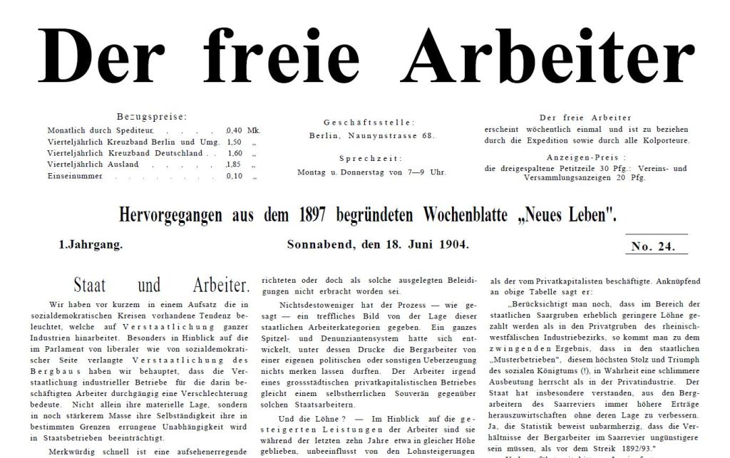 Sin embargo, Frauböse comenzó a criticar a Der Freie Arbeiter y en 1905 fundó Der Revolutionär (El Revolucionario), que también defendía a la Federación y tenía una tirada de 2.000 ejemplares. Fue un fracaso y Frauböse se marchó para unirse a la Sozialistische Bund de Landauer en 1908. De este modo, Der Freie Arbeiter ganó la batalla, alcanzando una tirada de unos 5.000 ejemplares en su apogeo en 1910.