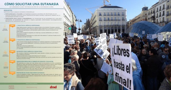 Derecho a Morir Dignamente - DMD El 18 de marzo de 2021 se aprobó la Ley Orgánica de Regulación de la Eutanasia. El 25 de junio entró en vigor y despenalizó la muerte asistida en algunas circunstancias. Las personas (mayores de edad) con un sufrimiento intolerable a causa de una enfermedad en fase terminal, o por una enfermedad irreversible con limitaciones … Continúa leyendo Morir con dignidad