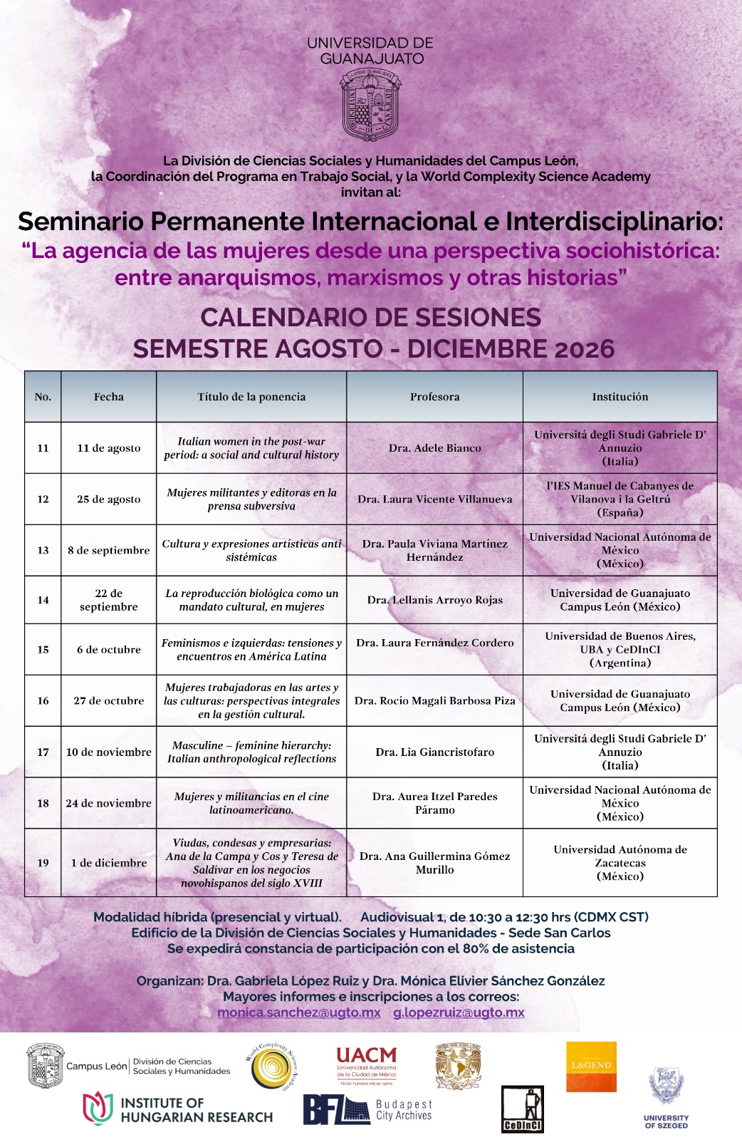La agencia de las mujeres desde una perspectiva sociohistórica: entre anarquismos, marxismos y otras historias – Febrero/julio 2026 – México, Guanajuato